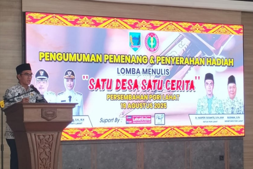 Lahat, SUMSEL – MLCI – Pengumuman Pemenang dan Penyerahan Hadiah Lomba Menulis “Satu Desa Satu Cerita” Dihadiri langsung Bupati Lahat, H. Bursah Zarnubi S.E, Asisten 1, jajaran Kepala OPD Pemkab Lahat, Ketua PGRI Lahat, Dr. Hasperi Susanto, S.Pd,.M.M dan peserta lomba. Selasa, (19/8/2025), Bertempat di Pendopo’an Rumah Dinas Bupati Lahat.