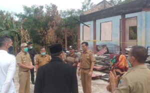 LAHAT SUMSEL, MLCI – Tiga kelas SMPN 7 Lahat berlokasi di Ulak Mas, tepatnya di Eks Unit II Trans Senabing Kecamatan Lahat yang terbakar kemarin dikunjungi Bupati Lahat, Cik Ujang SH. Senin (2/11/2020).