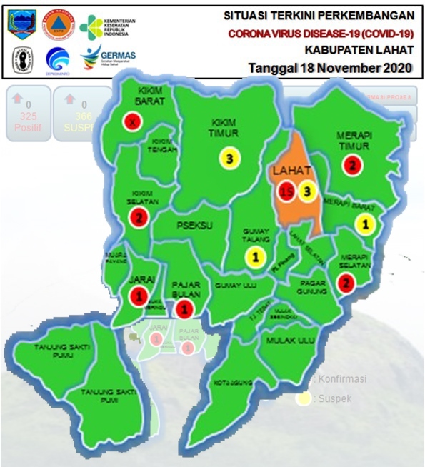 Sedangkan, data Suspek gabungan Orang Dalam Pengawasan (ODP) dan Pasien Dalam Pengawasan (PDP) berjumlah 8 orang yang berasal dari Kecamatan Lahat sebanyak 3 orang dan Kecamatan Merapi Barat 1 orang, Kecamatan Gumay Talang 1 orang dan Kecamatan Kikim Timur 3 orang