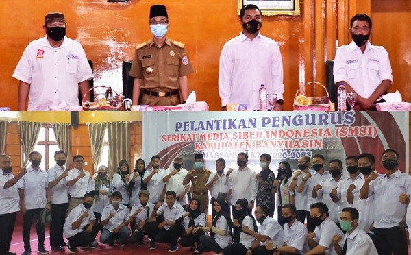 BANYUASIN SUMSEL, MLCI – Pengurus Serikat Media Siber Indonesia (SMSI) Kabupaten Banyuasin Masa Bakti 2020 – 2023 resmi dikukuhkan yang berlangsung di ruang Auditorium Pemerintahan Kabupaten (Pemkab) Banyuasin. Senin (23/11/2020).