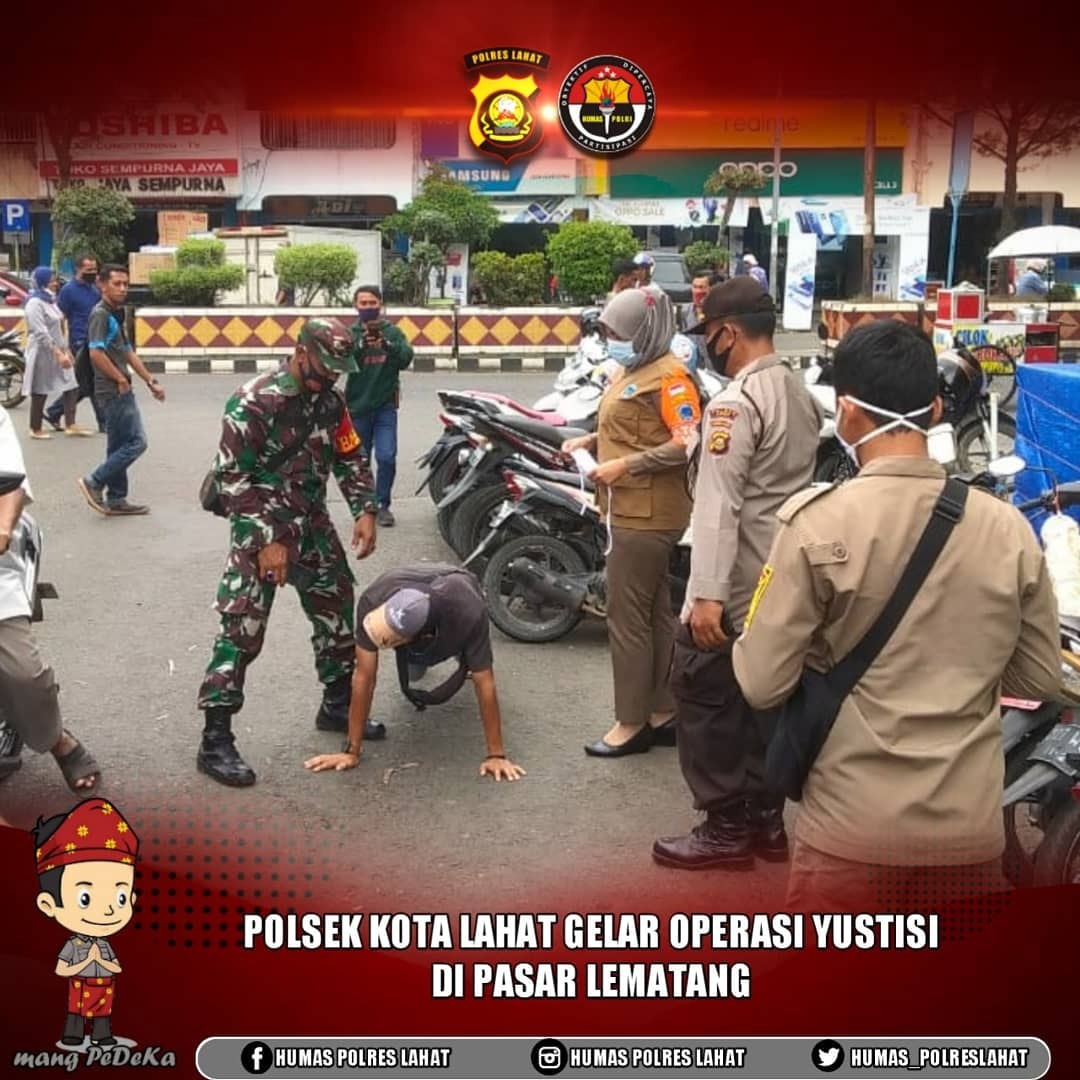 LAHAT SUMSEL, MLCI – Operasi Yustisi yang digelar di Pasar Lematang dipimpin langsung oleh Kapolsekta Lahat, Iptu Irsan SE bersama Anggota Koramil 405-12/Kota Lahat, Anggota Polsekta Lahat dan Sat Pol PP Pemkab Lahat. Kamis (17/12/2020).