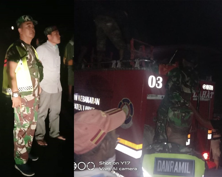 Saat kejadian, terlihat Komandan Koramil 405-11/Tanjung Sakti, Kapten Inf Mardiyanto beserta 4 Anggotanya didampingi Kapolsek dan Kanit Reskrim Polsek Tanjung Sakt, Aipda Nasution berikut 3 Angotanya ikut membantu berbaur dengan masyarakat memadamkan api.