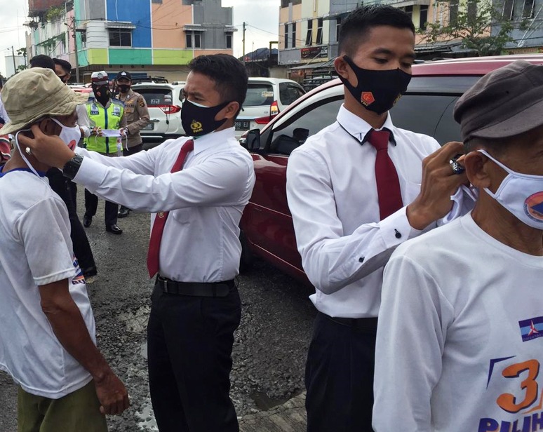 Kegiatan pembagian masker ini dilaksanakan secara rutin setiap harinya dengan 3 titik yang berbeda, masker yang di bagikan dalam setiapnya yaitu 100 masker ditujukan kepada masyarakat yang tidak memiliki masker