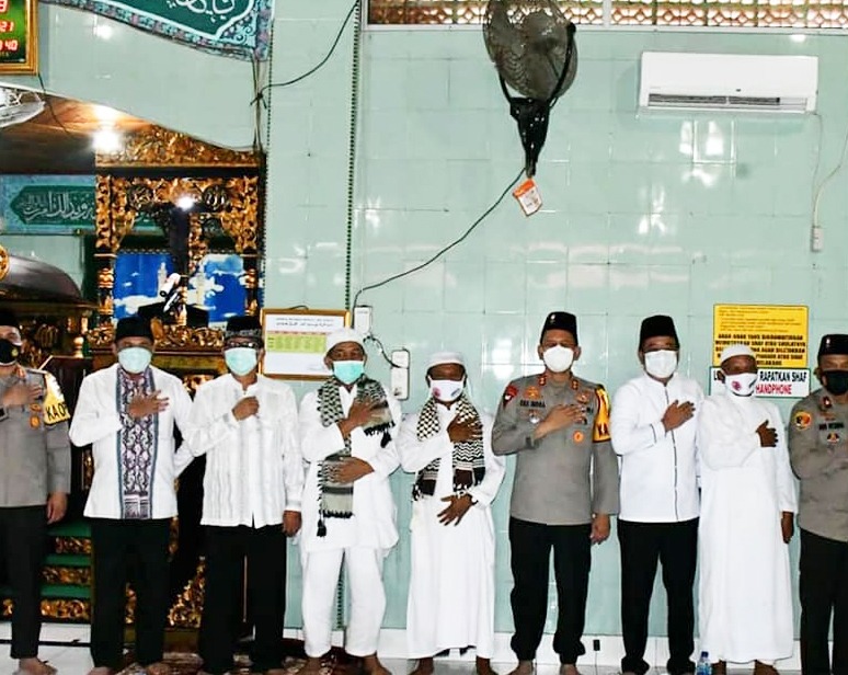 LAHAT SUMSEL, MLCI – Terlihat akrab kemarin Jumat (12/2/2021) saat sebelum dan sesudah sholat Jumatan, Kapolda Sumsel Irjen Pol Prof Dr Eko Indra Heri S MM bersama Tokoh Ulama dan Bupati Lahat, Cik Ujang SH.