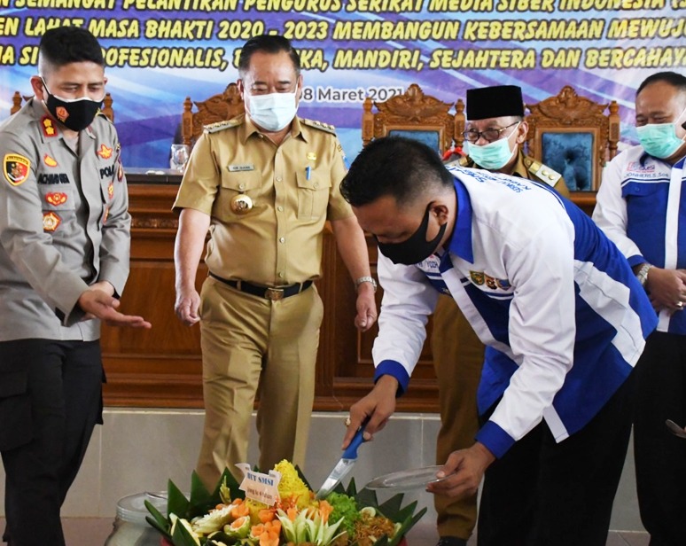 LAHAT SUMSEL MLCI – Bertepatan dengan hari jadi Serikat Media Siber Indonesia (SMSI) yang ke- 4 Tahun, pengurus SMSI Kabupaten Lahat resmi dilantik periode 2021- 2024. Kegiatan tersebut dilakukan di Pondopoan Rumah Dinas Bupati Lahat, Senin (8/3/2021).