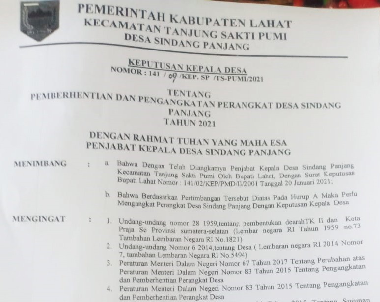 Keputusan Oknum Pjs Kades di Lahat Diduga Penyalagunaan Wewenang
