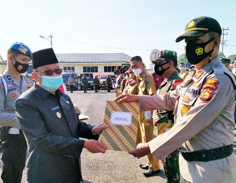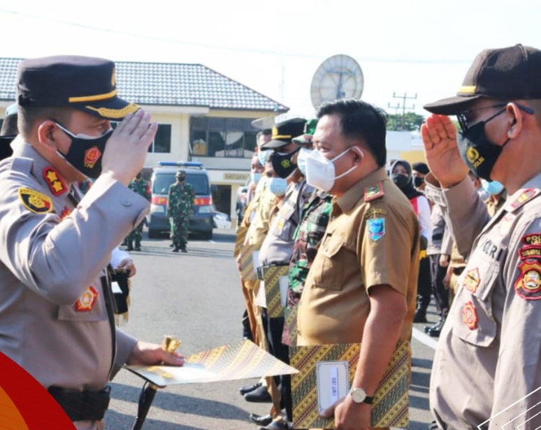 Wabup saat membacakan amanat Kapolres, menerangkan terbentuknya Posko PPKM Mikro adalah merupakan salah satu program pemerintah bertujuan untuk pencegahan atau mengurangi penularan virus covid 19.