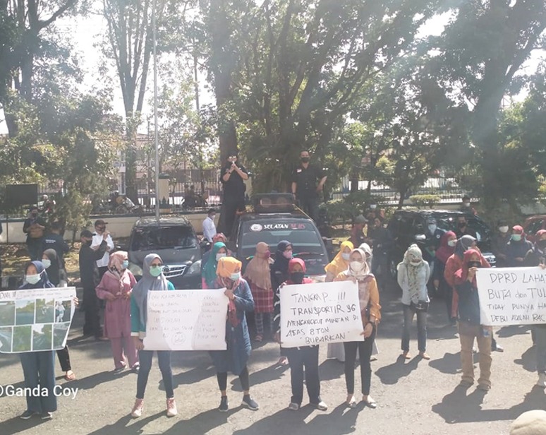 LAHAT SUMSEL, MLCI – Soal perusahaan angkutan batubara yang beroperasi di Kecamatan Merapi Timur, puluhan Emak- emak yang berasal dari wilayah setempat tergabung dalam Persatuan Peduli Lingkungan (PPL) Merapi Timur, melakukan demo aksi damai ke depan Gedung DPRD Kabupaten Lahat.