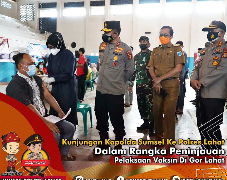 Lalu, Kapolda Sumsel laksanakan peninjauan pelaksaan Vaksin di Gedung Olahraga (GOR) Lahat.