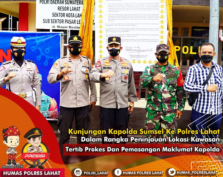 Selama Kunker Kapolda beserta PJU Polda Sumsel di Kabupaten Lahat situasi terpantau aman dan kondusif dengan tetap mengedepankan Protokol Kesehatan.****