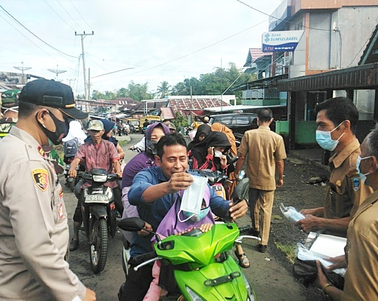 Dilanjutkan Kapolsek, pembagian masker sebanyak 500 lembar itu diberikan kepada masyarakat yang tidak menggunakan masker di lokasi Pasar Kalangan Desa Kota Agung.