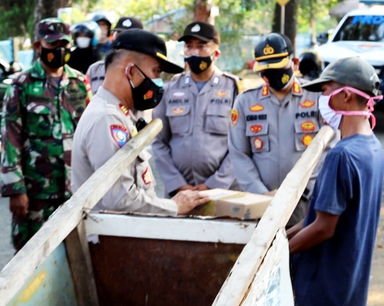 Pembagian sembako ditujukan kepada pedagang asongan, warung-warung kecil, penarik gerobak, tukang becak, tukang ojek dan warga putus pekerjaan.