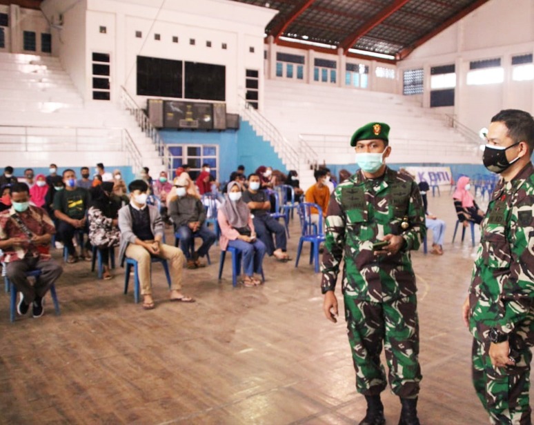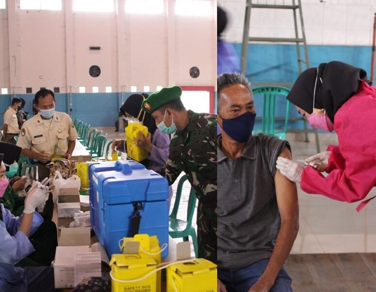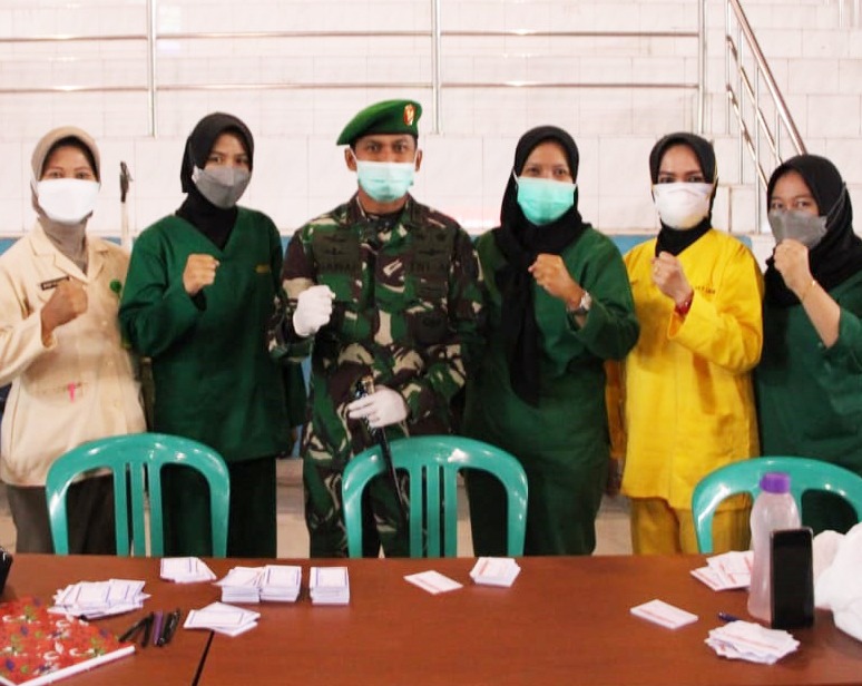Terpantau Pelaksanaan Vaksinasi yang dilakukan pada hari ini Sabtu (17/7/2021) di GOR lahat berlangsung tertib, terlihat Personil Kodim 04-05 bersama Personil Polres Lahat dan dibantu Satpol PP Pemkab Lahat.