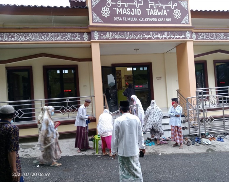 “Setelah itu, warga kami melaksanakan Sholat Id Adha di dalam Masjid Taqwa dengan khusuk dan sesuai dengan Prokes anjuran pemerintah,” jelas Kepala Desa (Kades) Tanjung Mulak, Herlansyah didampingi BPD Aspendi kepada media ini.