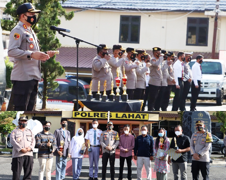 Pemberian penghargaan kepada pemenang lomba yang diadakan oleh Kapolres Lahat bekerjasama dengan Lahat Pos itu berlangsung di halaman Mapolres. Senin (29/11/2021) pukul 07.30 Wib.