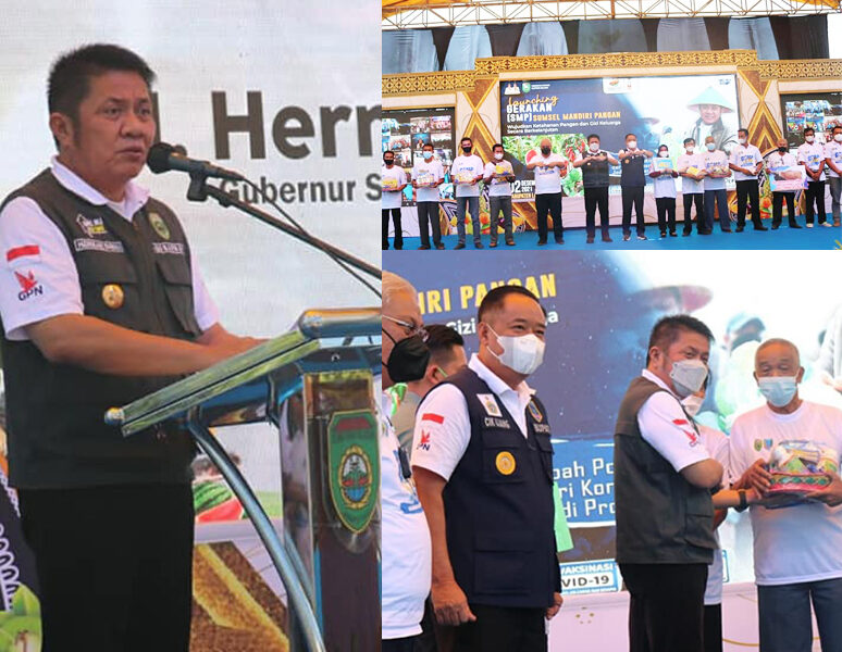 LAHAT SUMSEL, MLCI – Bertempat di Taman Wisata Tepian Sungai Lematang, Gubernur Sumsel H Herman Deru SH didampingi Bupati Lahat Cik Ujang SH lounching Gerakan Sumsel Mandiri Pangan Tingkat Provinsi tahun 2021 di Kabupaten Lahat sekaligus serahkan bantuan. Kamis (2/12/2021).