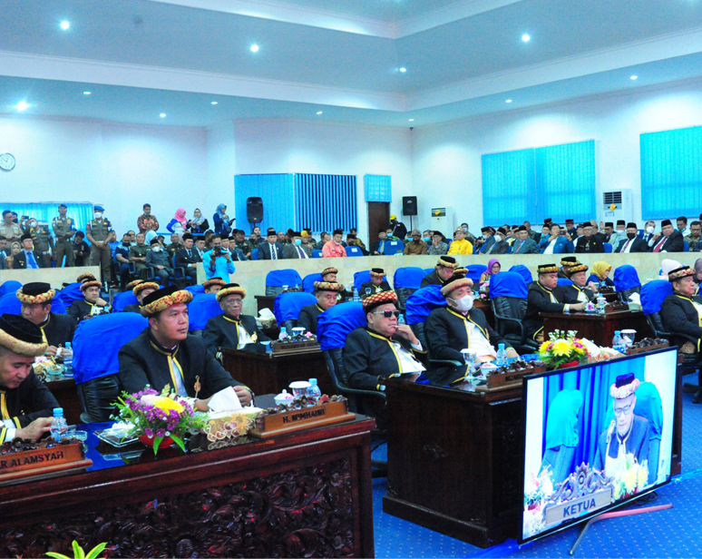 Terlihat hadir pada Rapat Paripurna Istimewa itu Gubernur Sumsel H Herman Deru melalui virtual, Bupati Lahat, Cik Ujang SH didampingi Wakil Bupati Lahat H Haryanto SE MM, Mantan Kabareskrim Polri Komjen Pol (Purn) Susno Duadji.