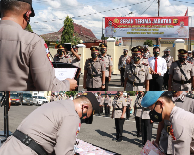 LAHAT SUMSEL, MLCI – Upacara Serah Terima Jabatan (Sertijab) jajaran perwira Polres Lahat, yakni 2 Kasat, 3 Kapolsek dan 1 Kasi secara langsung dimpimpin Kapolres Lahat, AKBP Eko Sumaryanto SIK. Senin (30/5/2022) pukul 14.30 Wib.