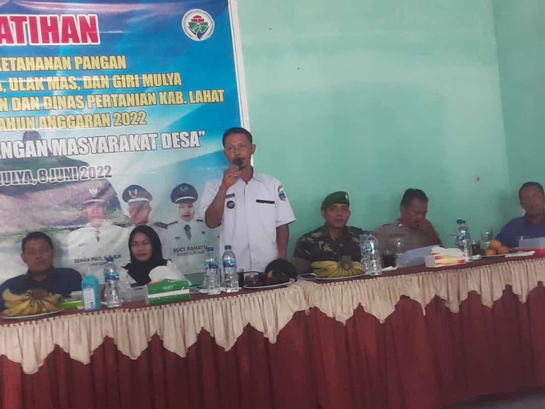 “Saat memberikan sambutan, kepala Desa Giri Mulya, Mujiono Mengucapakan ‘selamat datang kepada Tim PPL dari Dinas Pertanian dan Perikanan Kabupaten Lahat yang akan memberikan Materi tetang Ketahanan Pangan,