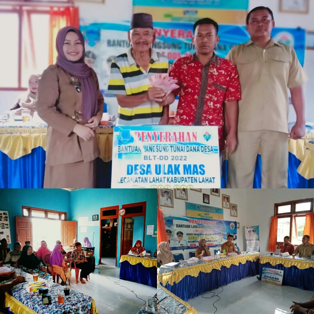Lahat Sum-Sel, – MLCI – Bertempat dikantor Desa Ulak Mas, Kecamatan Lahat, Kabupaten Lahat, Provinsi Sumatra Selatan telah berlangsung Penyaluran Bantuan Langsung Tunai Dana Desa (BLT-DD) th 2022 tahap kedua Bulan Apri, Mei dan Juni ke 77 Keluarga Penerima Manfaat (KPM).