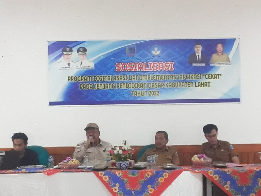 LAHAT SUM-SEL, – MLCI – Dinas Pendidikan dan Kebudayaan Kabupaten Lahat Mengelar, Kegiatan Sosialisasi Program Digitalisasi, Implementasi aplikasi “cekat” pada Jenjang Pendidikan Dasar diKabupaten Lahat.Selasa,11/10/2022