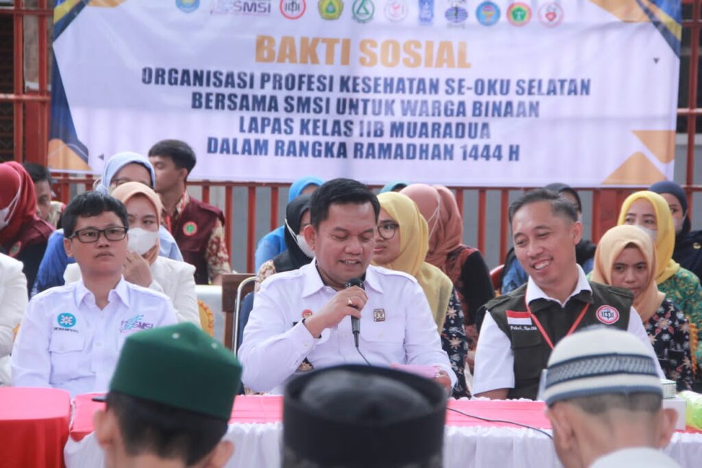OKU SELATAN SUMSEL, – MLCI – Serikat Media Siber Indonesia (SMSI) Kabupaten OKU Selatan bersama Organisasi Profesi Kesehatan Se-OKU Selatan melakukan bakti sosial dalam rangka bulan suci Ramadhan 1444 H. Kegiatan sosial ini berlangsung di aula Lapas Kelas IIB Muaradua. Rabu (05/04/2023).