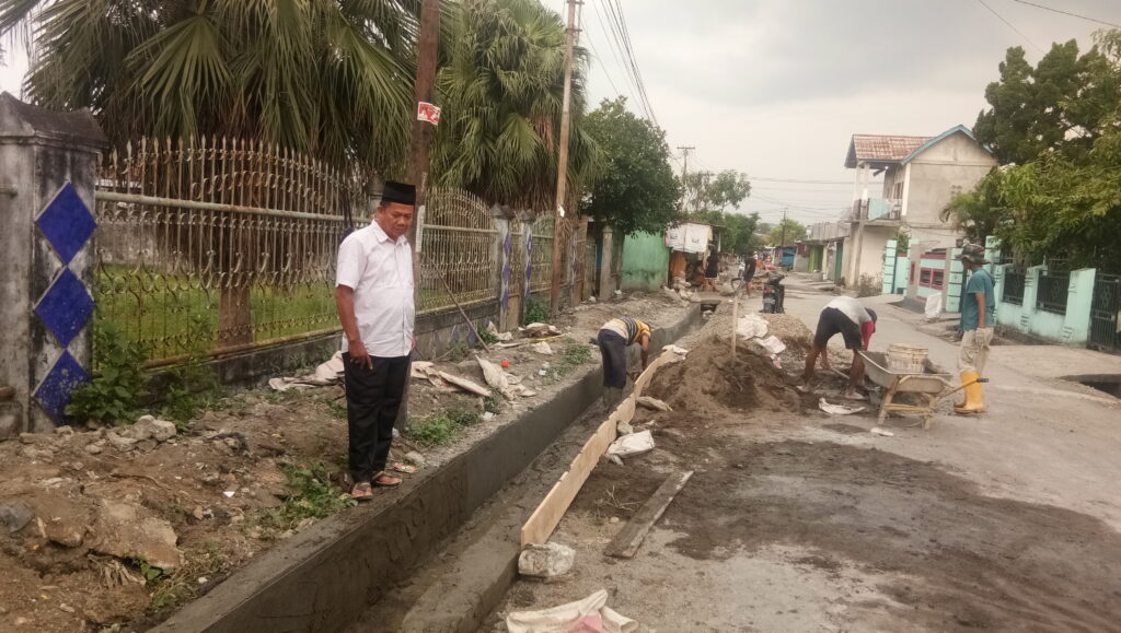 Dihari Libur, Junaidi SE Lurah Talang Jawa Utara Tinjau Bangunan SPAL