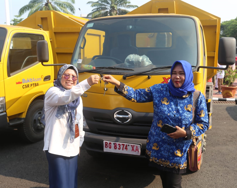 MUARA ENIM SUMSEL, MLCI – Bantuan PT Bukit Asam Tbk (PTBA) berupa 2 unit truk arm roll, 4 unit bak arm roll, dan 1 set mesin pemusnah sampah diserahkan kepada Pemerintah Kabupaten Muara Enim.