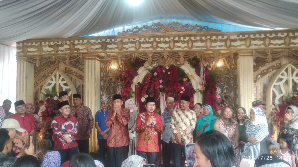LAHAT SUMSEL – MLCI – Bertempat di Desa Pama Salak Kecamatan Jarai Kabupaten Lahat, Yulius Maulana Calon Bupati Lahat 2024-2029 Menghadiri Resepsi Pernikahan Prima Gus Pramana dan Ria Utami. Pada hari Minggu, 28/07/2024.