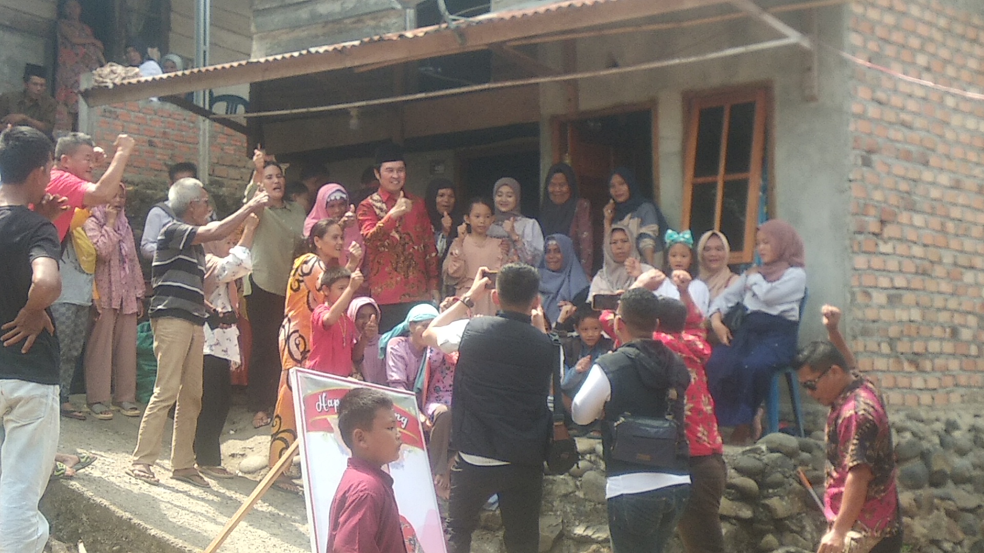 Kehadiran Yulius Maulana ke Desa Tanjung Sirih guna memenuhi undangan ngunduh mantu atas pernikahan Herdi dan Riska yang sudah dilakukan akad nikah beberapa waktu lalu.