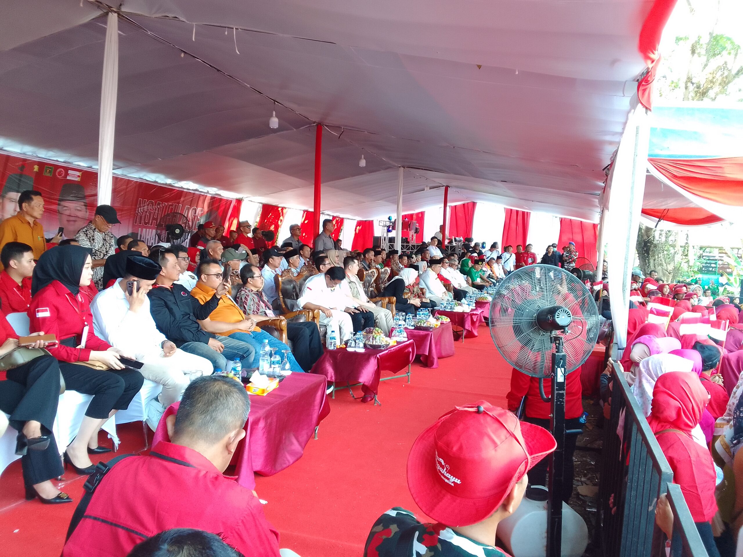 Cabup dan Cawabup YM-BM saat menyampaikan sambutan mengatakanb ahwa tadi yang berpidato Ketua PDI Perjuangan Sumsel dan kembali terpilih menjadi anggota DPR RI.