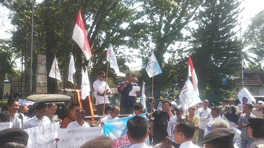 LAHAT SUMSEL- MLCI – Ratusan Jurnalis dan Aktivis Gelar Aksi Damai Depan Gedung DPRD Lahat, Proses Hukum Oknum ASN Berinisial L