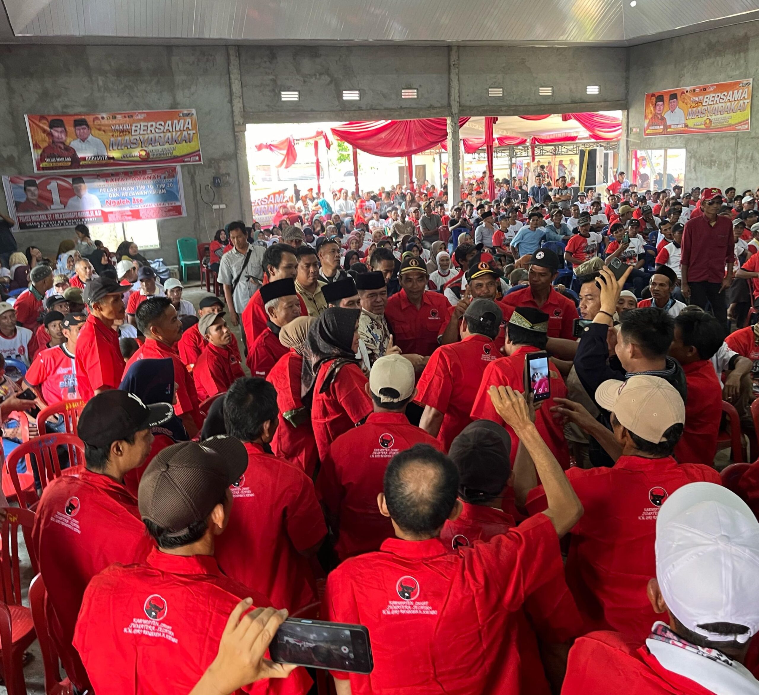 Kemudian, YM-BM bersalaman satu persatu dengan seluruh masyarakat yang hadir. Dan, ada juga usai bersalaman masyarakat rebutan foto selfie baik bersama Yulius Maulana maupun Budiarto Marsul.