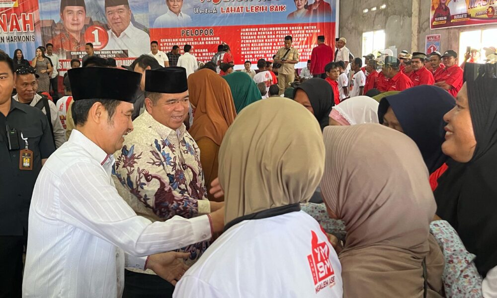 Kedatangan YM-BM di Desa Simpang Tiga Pumu Kecamatan Tanjung Sakti Pumu itu langsung disambut yel-yel dengan penuh semangat oleh ribuan masyarakat secara serentak, “YMBM – Bupati dan Wakil Bupati, YMBM – Ngaleh Ase, YMBM – Menang Menang Menang, Takbir – Allahuakbar, Coblos Nomor – Satuuuuuu”.