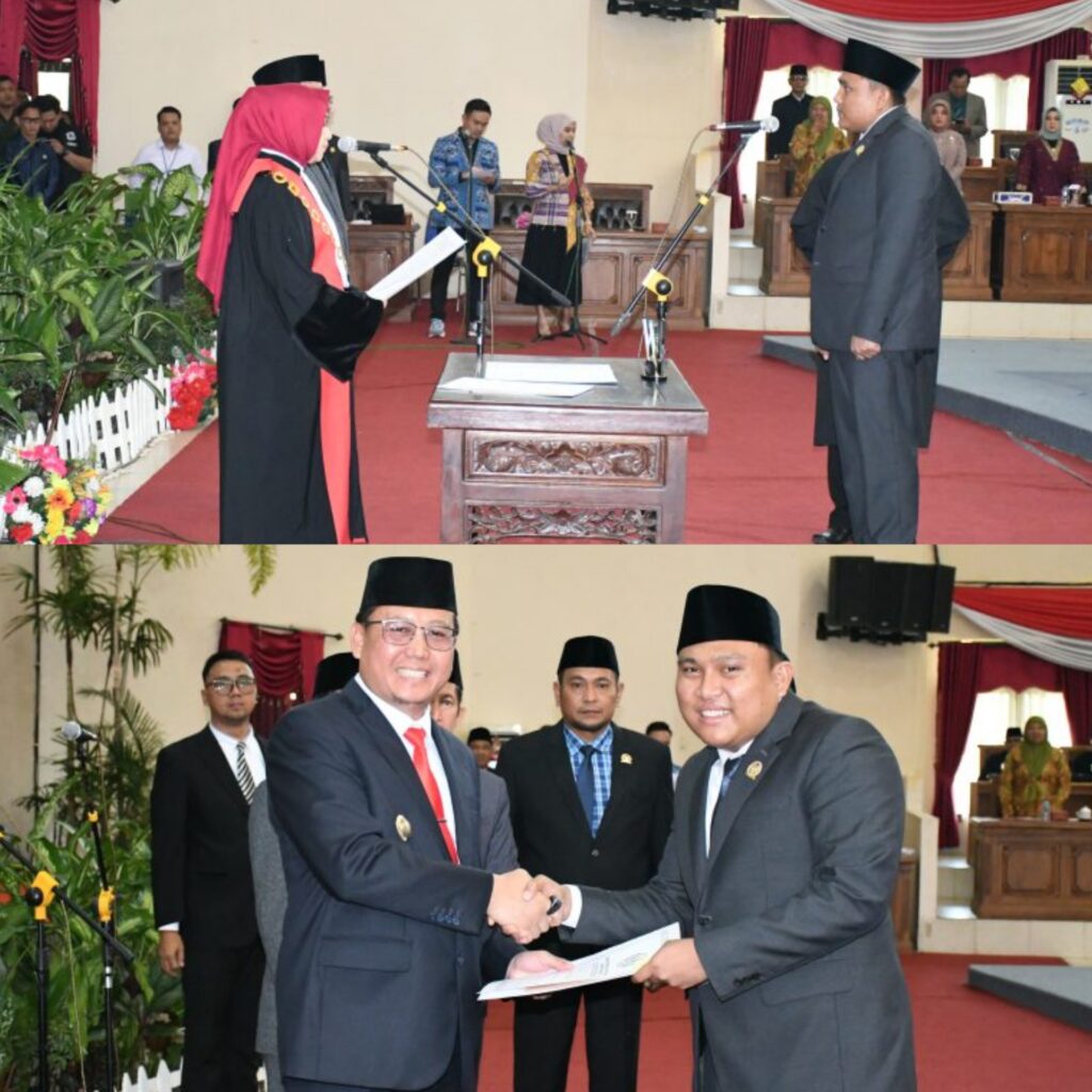 Pengukuhan dan Pengambilan Sumpah Janji Pimpinan DPRD masa jabatan 2024-2029 di laksanakan pada hari Senin (14/10/2024) di Ruang Rapat Paripurna DPRD Kabupaten Banyuasin.