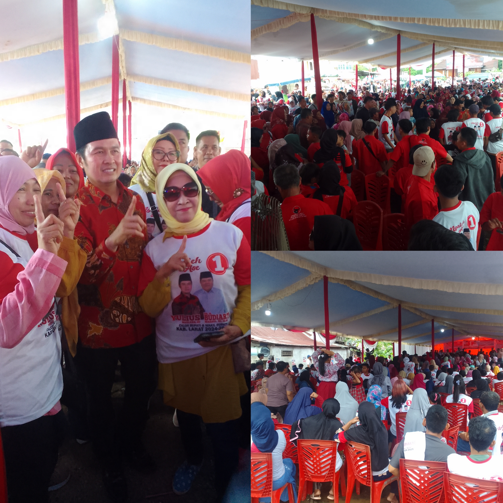 LAHAT SUMSEL, MLCI – Walau cuaca mendung, namun ratusan masyarakat di lapangan Kelurahan Lahat Tengah Kecamatan Lahat tetap memadati acara Pengukuhan Team Pemenangan dan Team Keluarga YM-BM. Rabu (16/10/2024).