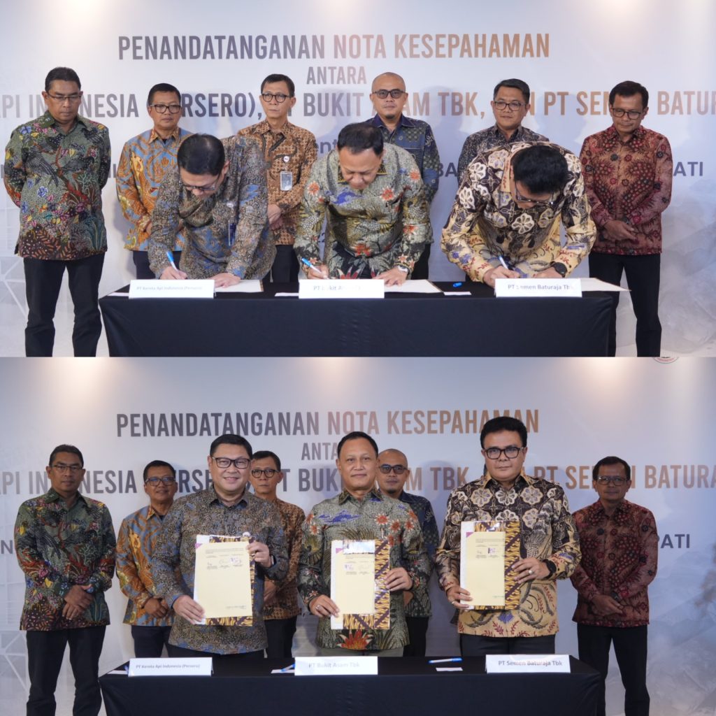 Penandatanganan MoU dilakukan oleh Rafli Yandra, Direktur Pengembangan Usaha PT Bukit Asam Tbk (PTBA); Rudi As Aturridha, Direktur Pengembangan Usaha & Kelembagaan PT Kereta Api Indonesia (Persero); Muhammad Syafitri, Direktur Operasi PT Semen Baturaja Tbk (SMBR) di Signature Lounge SIG, Jakarta, Selasa (22/10/2024).