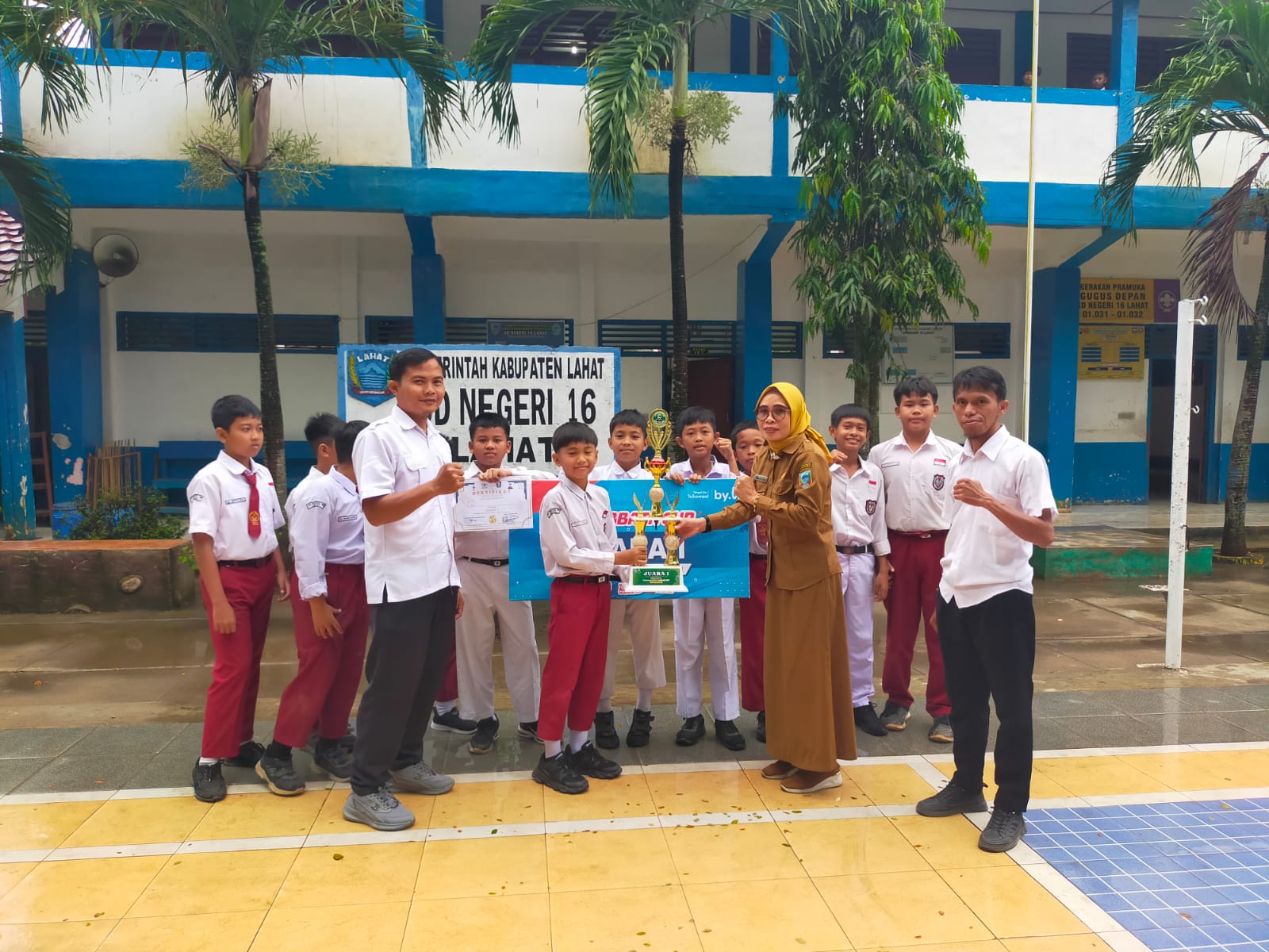 LAHAT SUMSEL – MLCI – Bertempat di Halaman Sekolah SD Negeri 16 Lahat, pada hari Senin 3 Februari 2025 berlangsung penyerahan Piala oleh Kepala Sekolah kepada Tim Futsal SIXTEEN yang berhasil Meraih Juara 1 dalam ajang Kejuaraan Futsal Labbaik Cup.