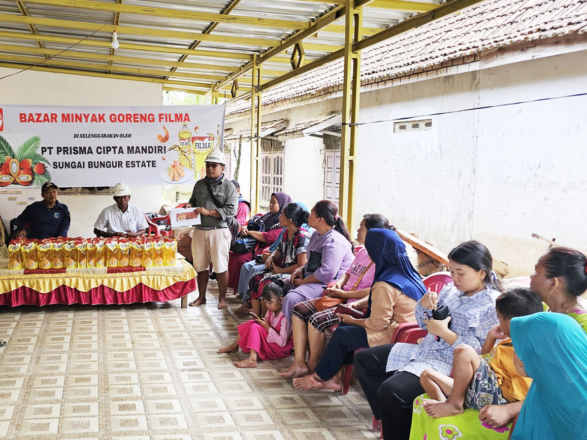 LAHAT SUMSEL, MLCI – Manajemen Sinar Mas Group yakni PT. Prisma Cipta Mandiri (PCM) Unit Sungai Bungur Estate (SBE) gelar Bazar 550 bingkisan liter Minyak Goreng merek Filma dengan harga murah dari pasaran. Senin (17/3).