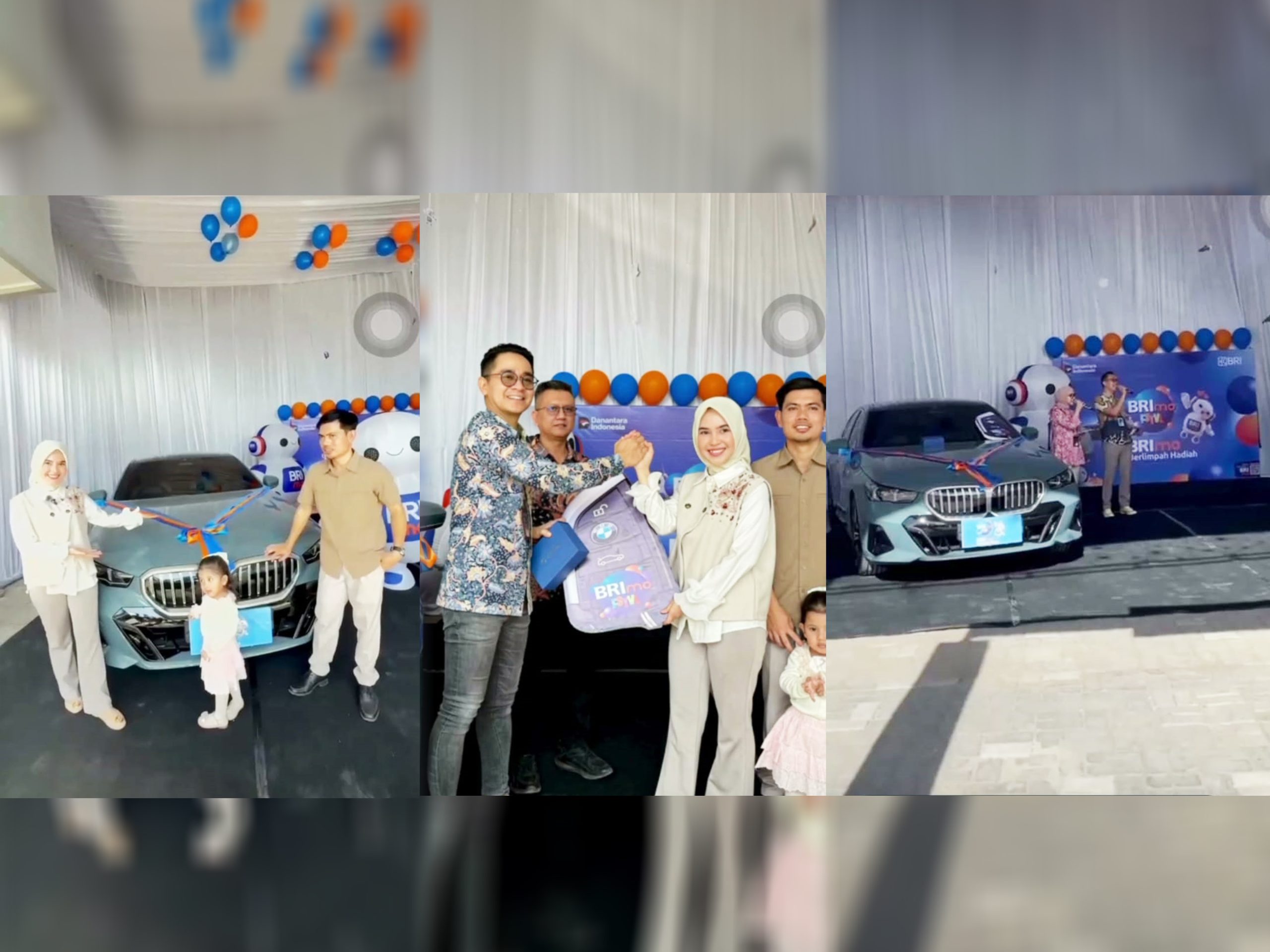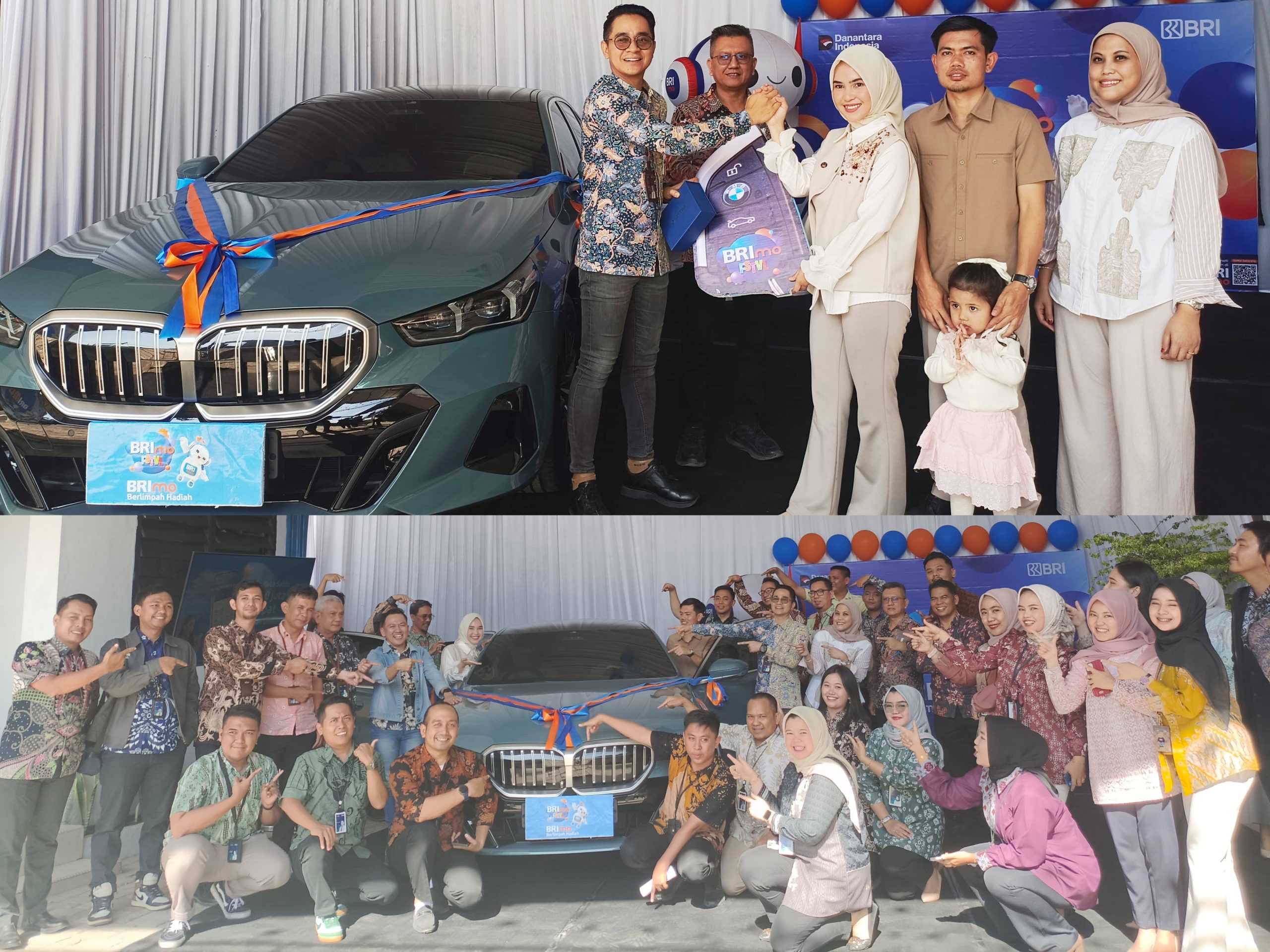 Nasabah BRI Cabang Lahat Unit Kota Agung, Tuti Maharani ini menerima hadiah “BRIMO Festival 2025” berupa satu unit mobil BMW 520i M Sport yang diserahkan langsung oleh Wakil Pimpinan (WP) Funding dan Retail Transaction Banking, Triyoga Agung Wibowo.