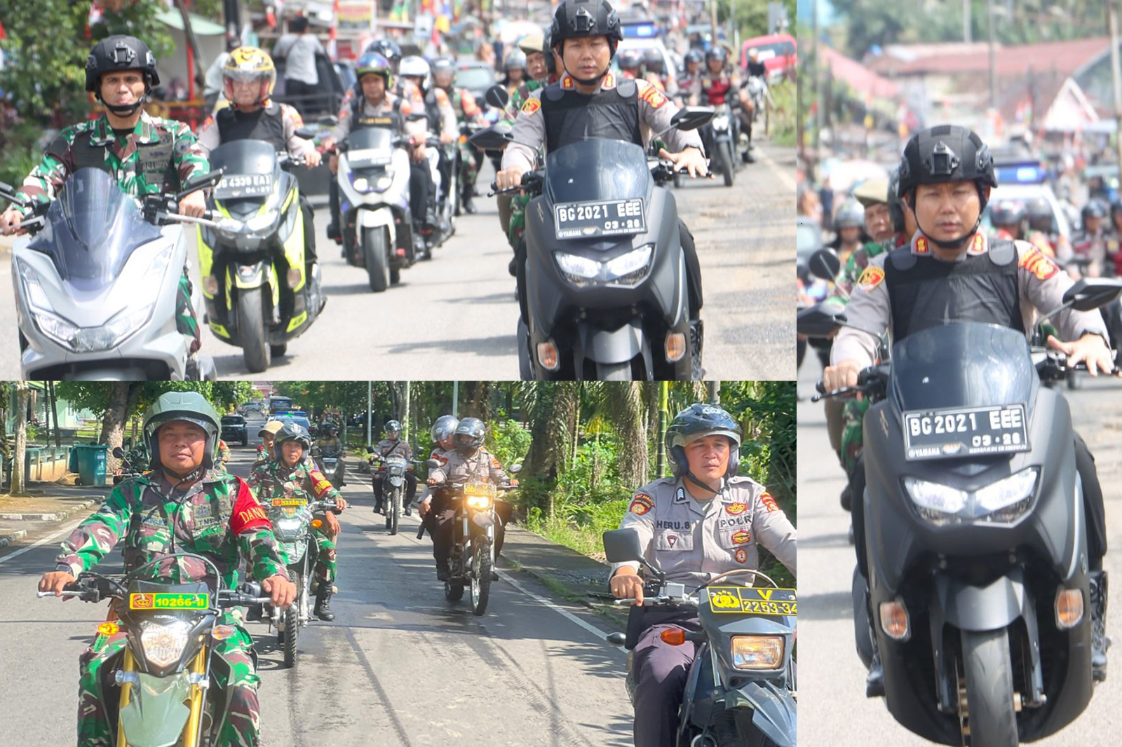 LAHAT SUMSEL, MLCI – Bersama Komandan Kodim 0405/Lahat Letkol Inf Taufik Satria Nugraha SIP MM, Kapolres Lahat AKBP Novi Edyanto SIK MIK dan Komandan Subden POM Lahat Lettu Cpm Jamhari memimpin langsung patroli berskala besar (Sinegeritas). Senin (1/9)