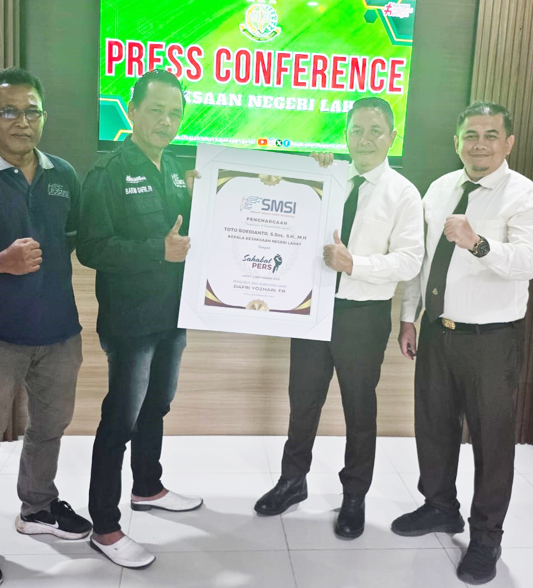 Sementara itu, Kajari Lahat mengucapkan terima kasih atas perhatian serta penilaian rekan pers, khususnya SMSI Kabupaten Lahat dan pemilik perusahaan media online sahabatsiber.com hingga memberikan penghargaan “Sahabat Pers” dan “Dulur Pers”.