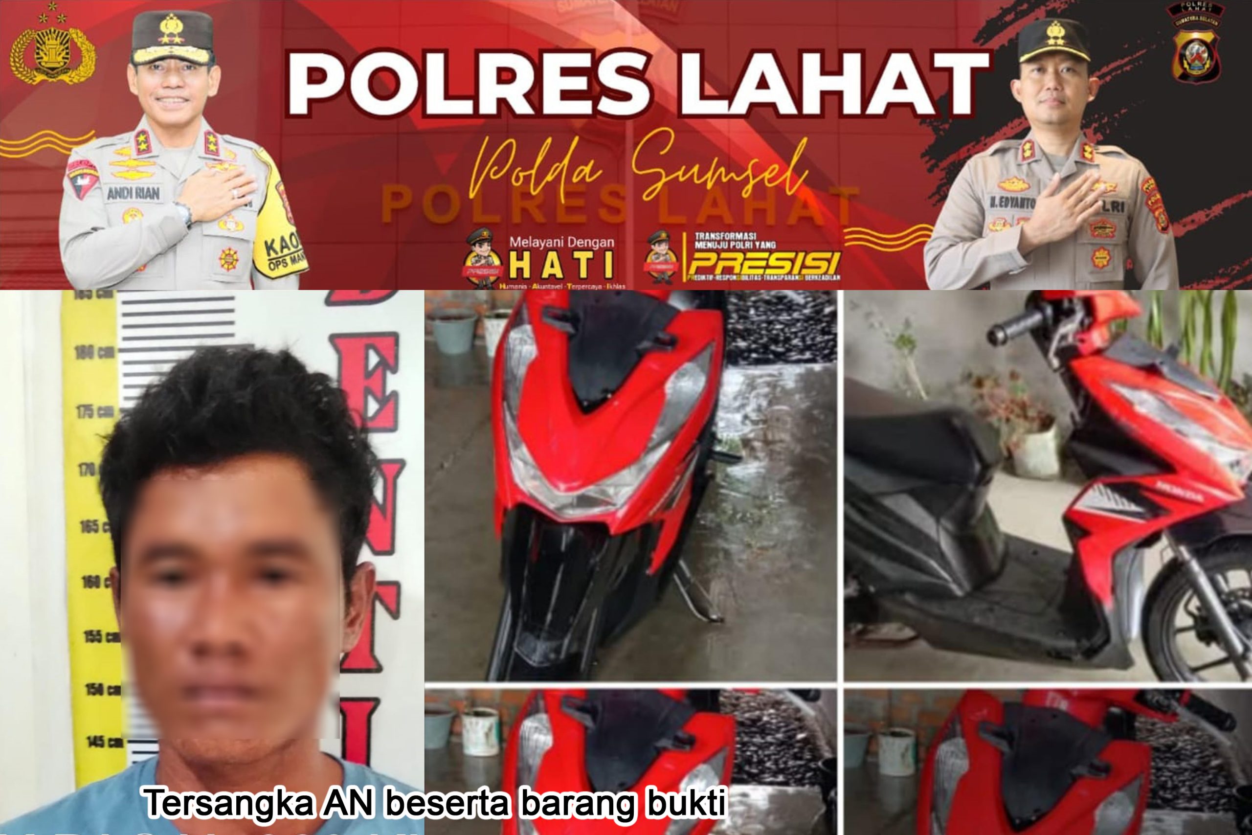 Diterangkan Lispono, dini hari tadi Jumat 7 Nopember 2025 sekira jam 03.00 Wib Tim Jagal Bandit berhasil menangkap tersangka Curanmor AN (33) di rumahnya, tepat di Desa Tanjung Beringin Kecamatan Kikim Selatan.