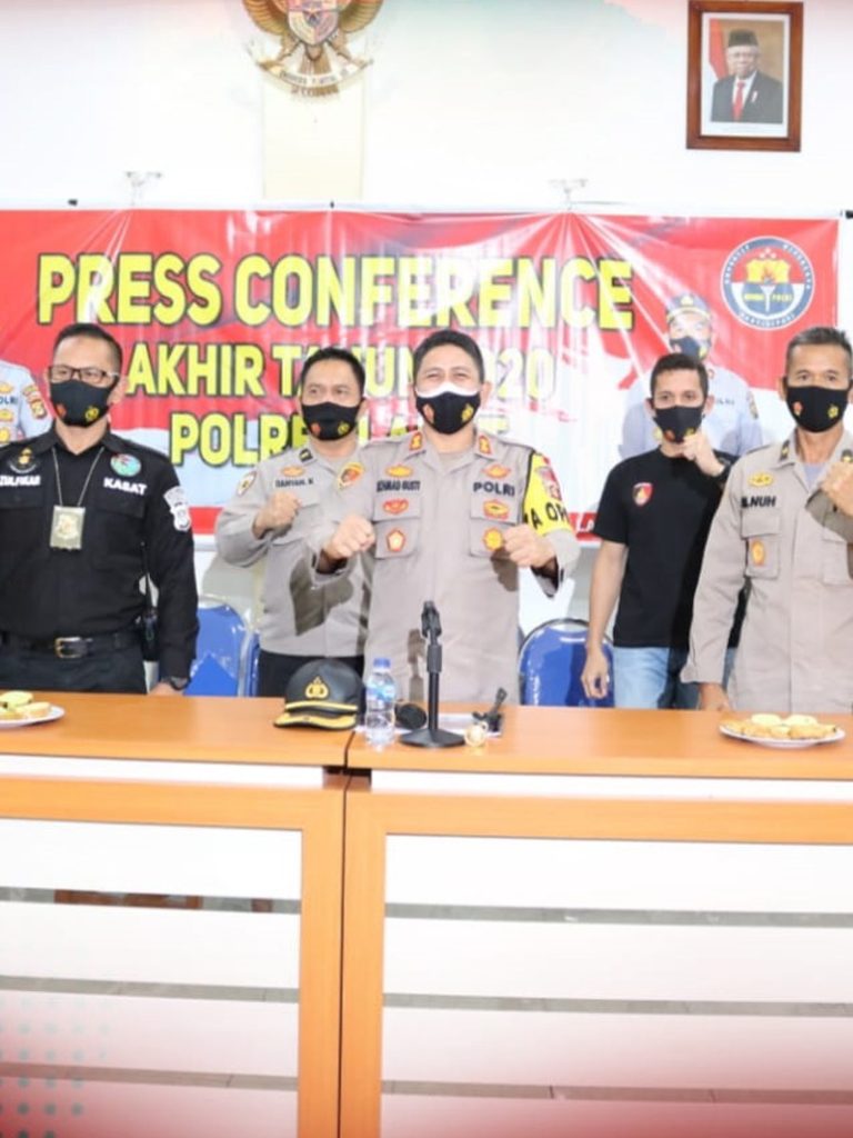 Hal diungkapkan Kapolres Lahat, AKBP Achmad Gusti Hartono SIK didampingi Wakapolres Jossy Andrianto Sst MM dan Kabag Ops Kompol Sunarso SH saat Press Conference Akhir Tahun 2020 di Aula Mapolres Lahat. Kamis malam (31/12/2020).