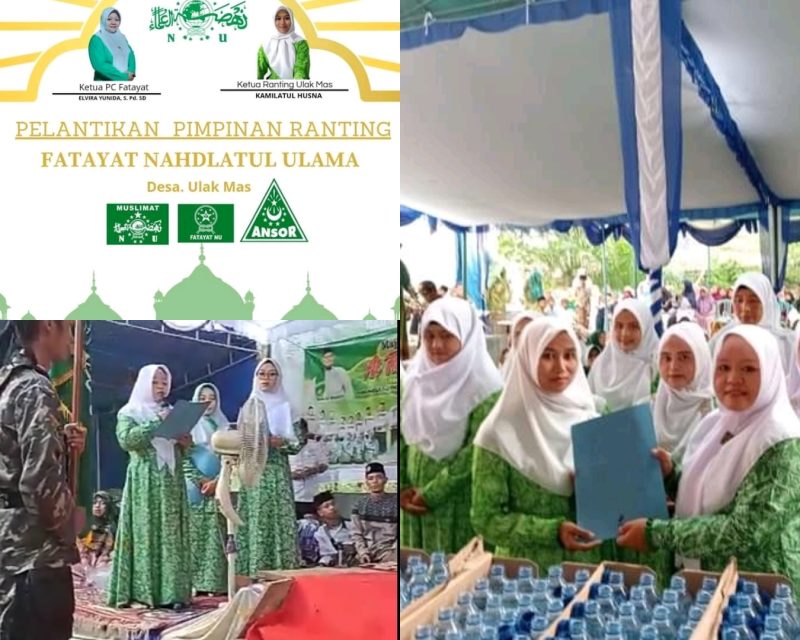 Tampak, Ketua FC Fatayat NU Elvira Yunida. S.Pd. SD Melantik Ketua Ranting Fatayat NU Desa Ulak Mas Kamilatul Husna, wakil ketua Disheni Puspita sari, sekretaris Auli Putri, wakil sekretaris Silfana Nurjana, Bendahara Miftahul Jana, wakil Bendahara wiraatuhu wabaraoka, Bidang-bidang Organisasi dan anggota-anggota.