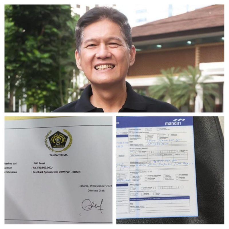 Cashback untuk pihak BUMN dibuat tanda terimanya tanggal 29 Desember 2023. Dalam kuitansi jelas tertera “Untuk pembayaran cashback UKW PWI – BUMN.”