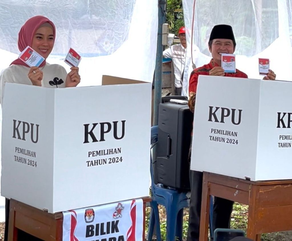 LAHAT SUMSEL, MLCI – Calon Bupati Lahat dengan nomor urut 1, Yulius Maulana ST bersama istri tercintanya Putri Sari Dewi SKom nyoblos atau menyalurkan hak suara di Tempat Pemungutan Suara (TPS) 06 Kelurahan Bandar Jaya Kecamatan Lahat. Rabu (27/11/2024).