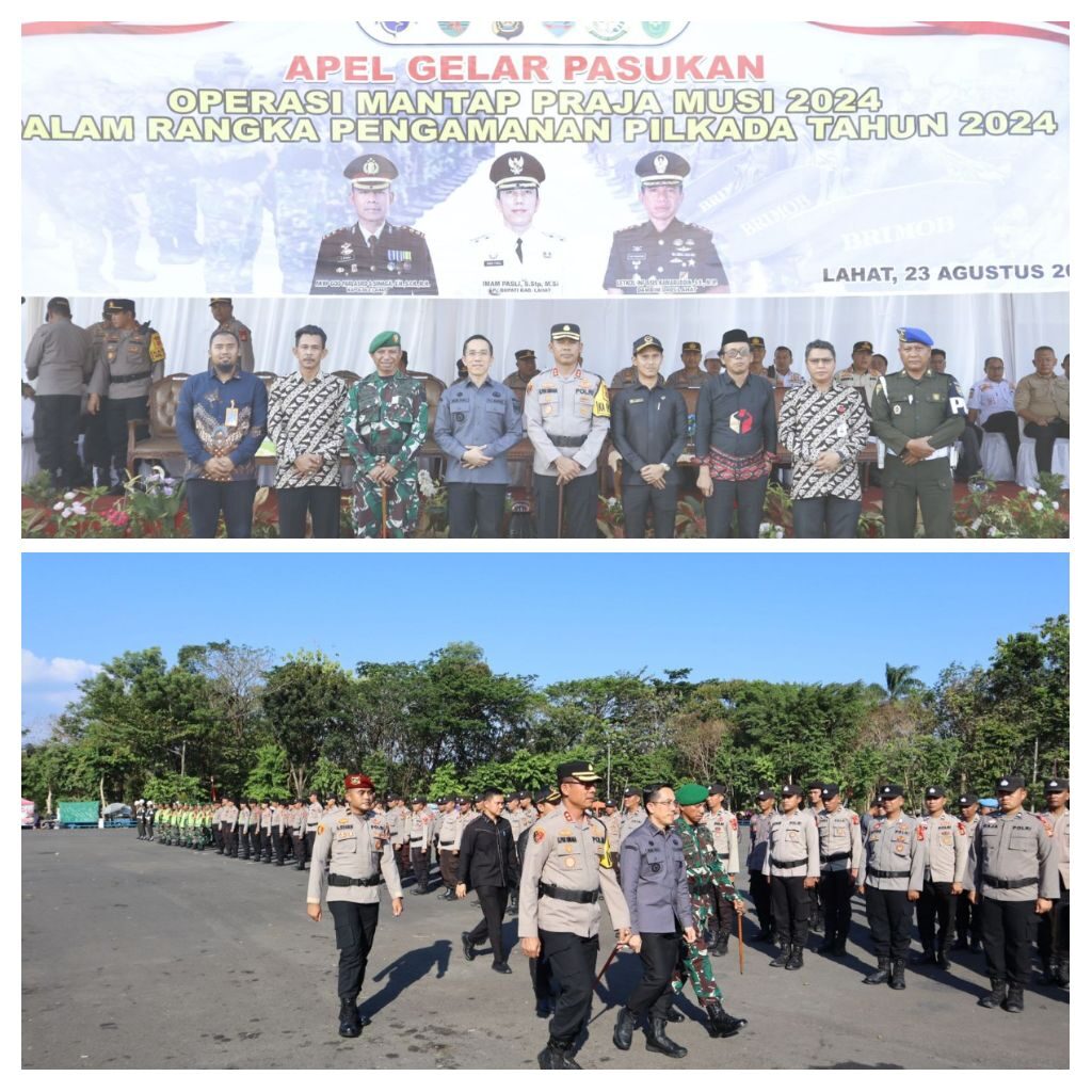 LAHAT SUMSEL. MLCI – Secara langsung Kapolres Lahat, AKBP God Parlasro S Sinaga SH SIK MH memimpin Apel Gelar Pasukan dalam rangka pengamanan Pilkada, yakni Operasi Mantap Praja 2024 di lapangan Eks MTQ. Jumat (23/08/2024) pukul 16.00 wib hingga selesai.