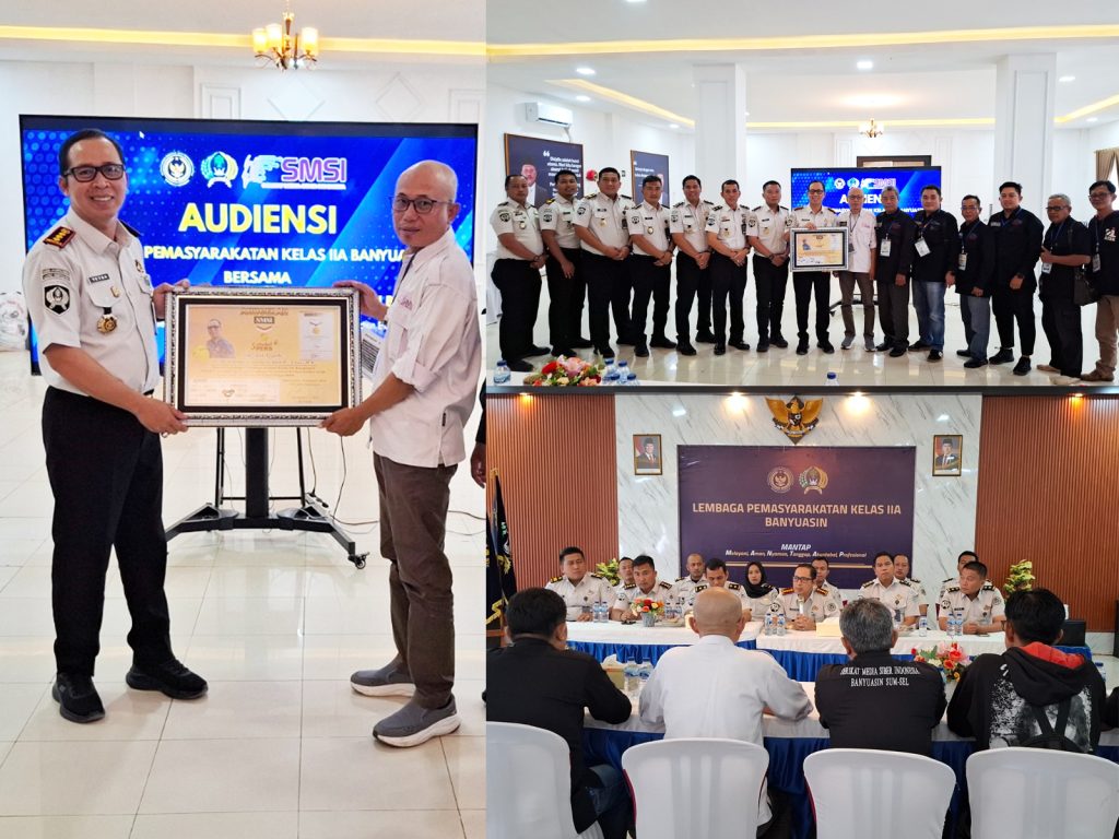 Anugerah diserahkan langsung oleh Ketua SMSI Kabupaten Banyuasin, Sumantri Adie, beserta jajaran pengurus pada kegiatan audiensi dan silaturahmi yang berlangsung di aula Lapas Kelas IIA Banyuasin, Selasa (20/01).