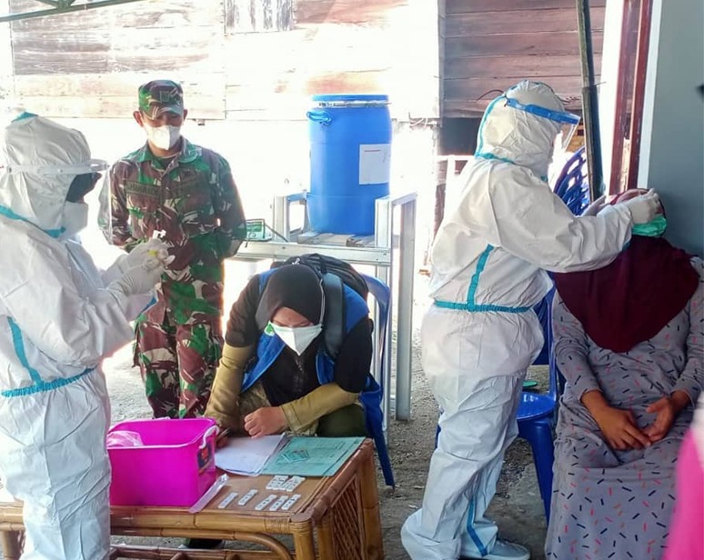 Babinsa Koramil 405-11/Tanjung Sakti Ikut Tracking, 10 Warga Diswab